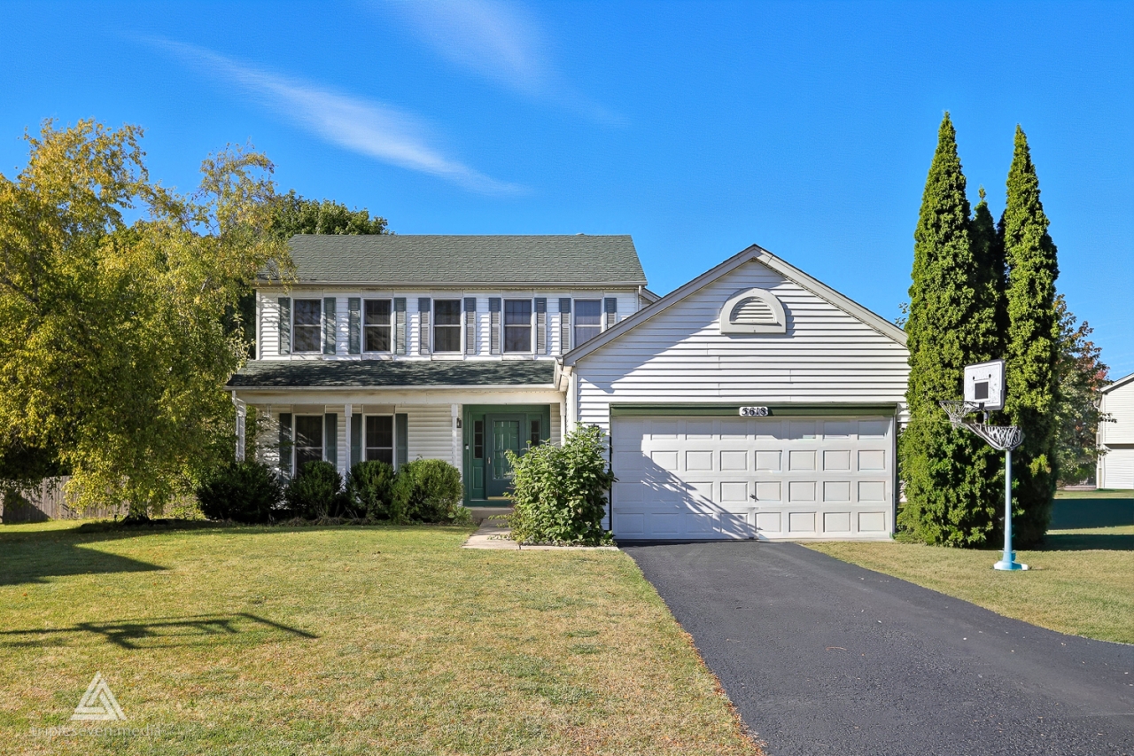 Backyard oasis with deck, patio, hot tub, newer gazebo, and above-ground pool all overlooking open green space. Inside, the large kitchen with island, pantry, and eating area flows into the family room, creating the perfect gathering space. Upstairs offers 4 bedrooms including a primary suite with full bath, plus a main floor den that can serve as a 5th bedroom or office. The full finished basement expands the living area with a 2nd family room and exercise/rec room. Major updates include Pella patio door (2024), AC, dishwasher & pool liner (2023), reverse osmosis system, owned water softener, water heater, sump pump w/backup, and pool pump (2022), and pool heater (2020). Convenient 2-car garage with extended driveway and location near schools, parks, shopping & highways.